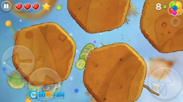 玩家借助虚拟方向键操控毛毛虫进行左右移动与跳跃,同时利用攻击键来发射毛刺或者使用头槌对敌人发起攻击。