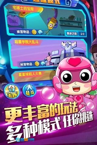 开心超人机甲联盟的角色养成机制:每位角色具备3种特殊能力与1种可变能力,总计涵盖6种不同类型。所有角色的能力均独具特色,玩家能借助这一系统增进与角色间的互动和情感联结,进而从中收获游戏乐趣。