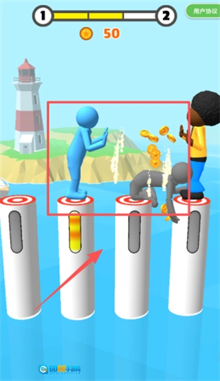 游戏的背景设定于色彩绚烂的弹性竞技场内,玩家可挑选造型各异的橡皮小人,参与一场热闹的推挤竞赛。