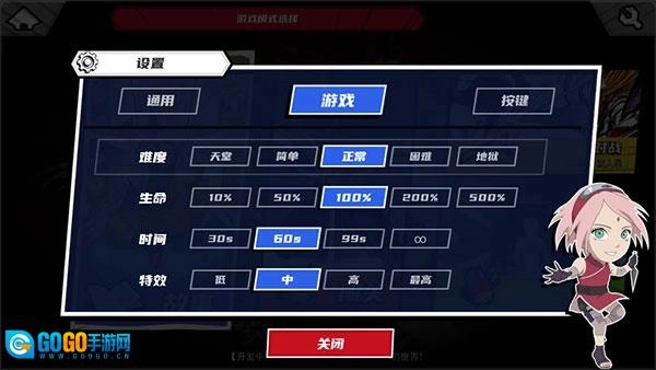 点击右上角的设置按钮,就能对难度、生命、时间、特效等选项进行设置。