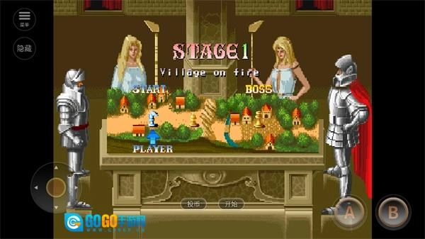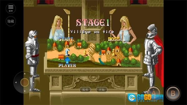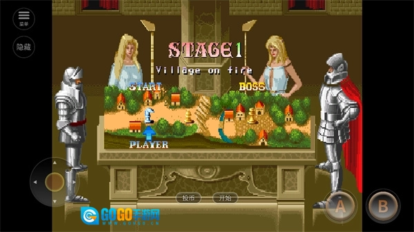 进入关卡后,左下角的摇杆用于操控角色进行上下左右的移动,右下角的A键对应攻击功能,B键则是跳跃功能。通过组合不同的A、B键操作顺序,还能够搓出特定的招式。