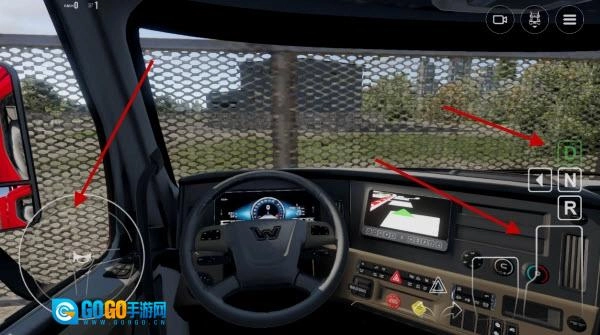 把档位切换到D档,接着按住右下角的油门就能启动车辆,车辆方向可通过左侧的方向盘图标来操控。