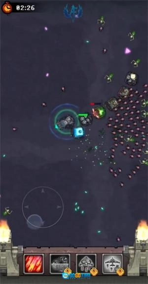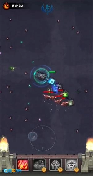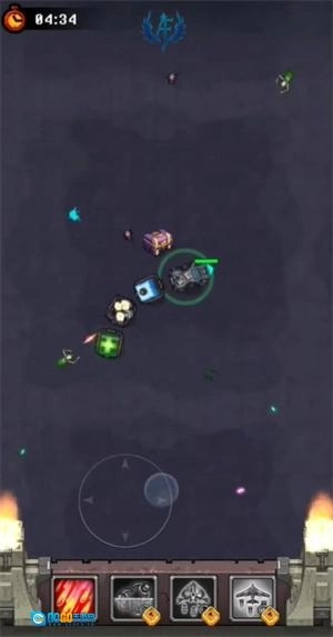 进入关卡地图后,借助虚拟按键即可操控战车移动,当附近出现怪物时,战车会自动发起攻击。