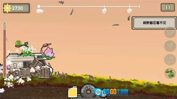 接着点击“出击”按钮,即可开启闯关模式。进入地图后,你可以通过虚拟按键操控车辆自由前进或后退,也能点击右侧的按键来实现快速跳跃。
