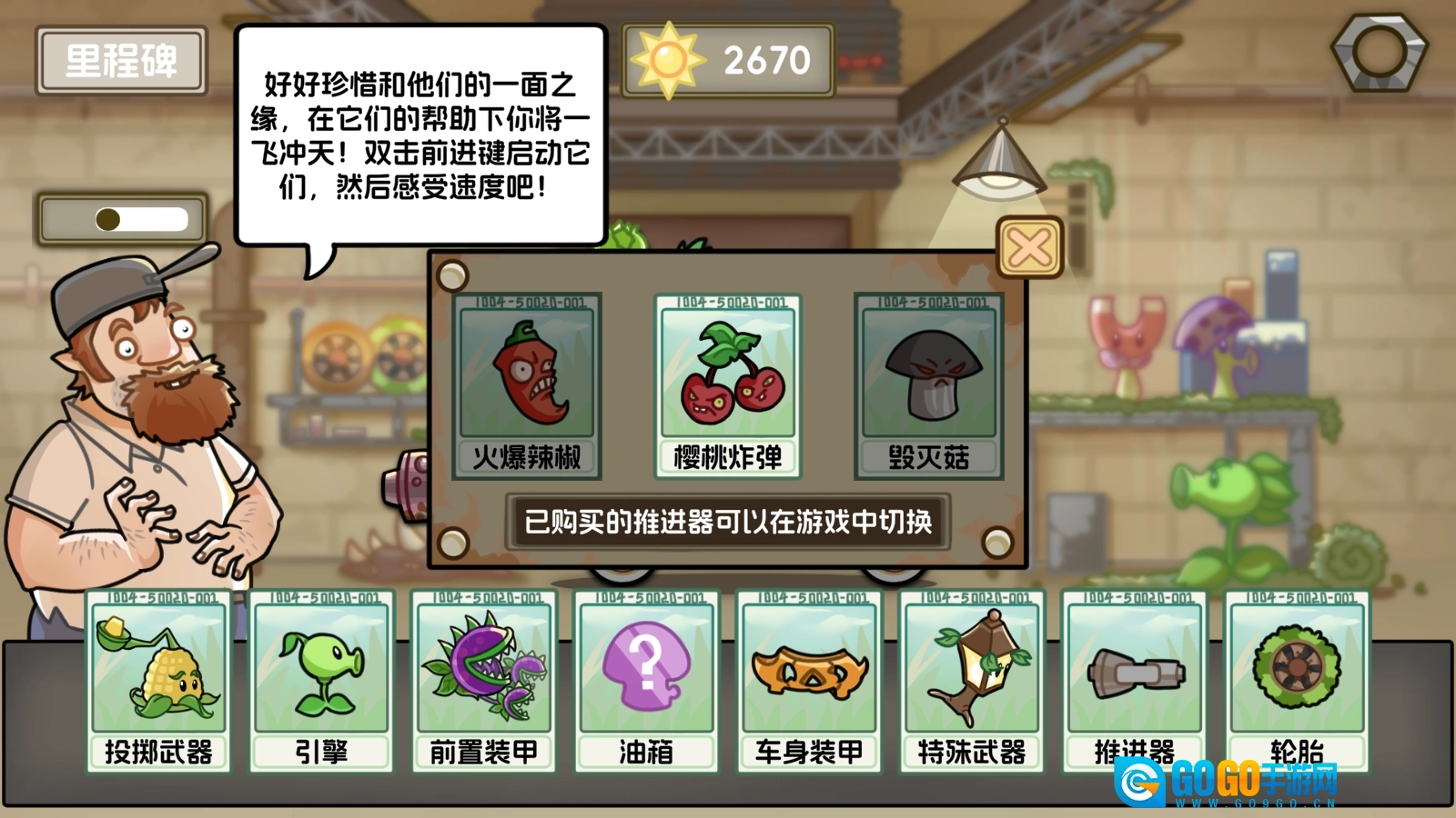 前方可能会出现强大的僵尸,你可以点击右侧的植物图标来发动攻击。
