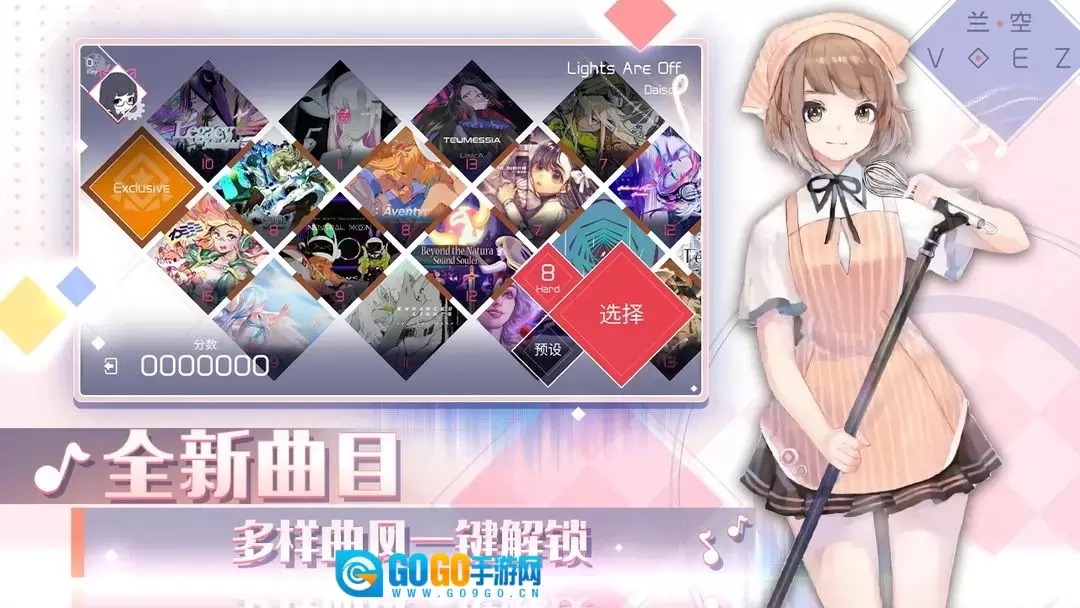 游戏曲库中,除了《兰空 VOEZ》的原创曲目外,还新加入了雷亚旗下另外两款优质音游《Deemo》与《Cytus》的部分曲包,同时也涵盖了流行摇滚乐专辑。