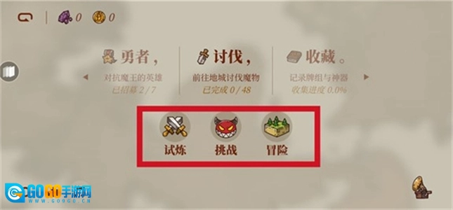 选择“讨伐”进入试炼、挑战或冒险模式。