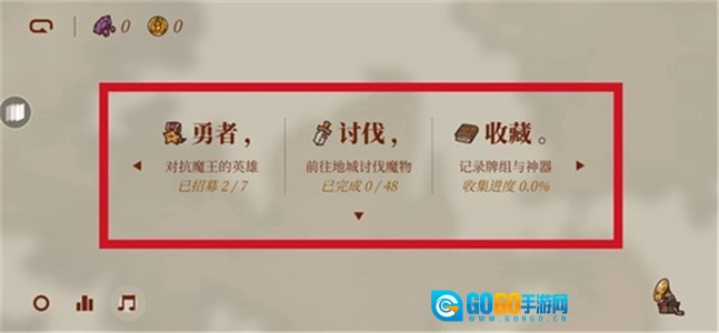 打开勇者闯魔城后有勇者、讨伐、收藏三个栏目