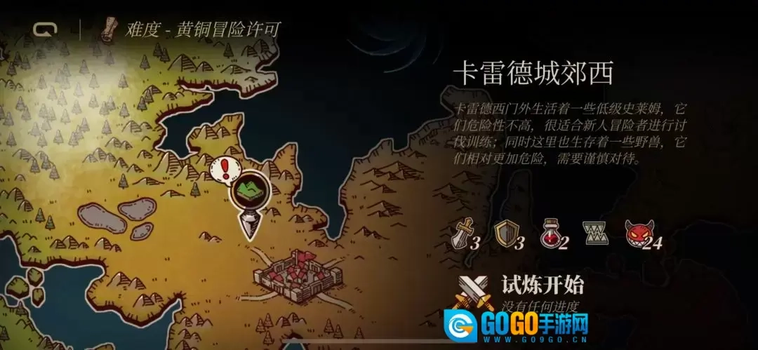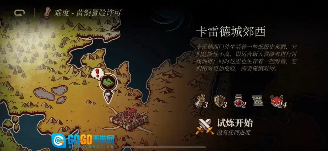 在“试炼”界面里查看地图并开启挑战,可选择挑战魔王城或是进入小型战斗。