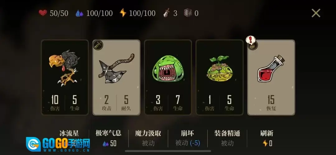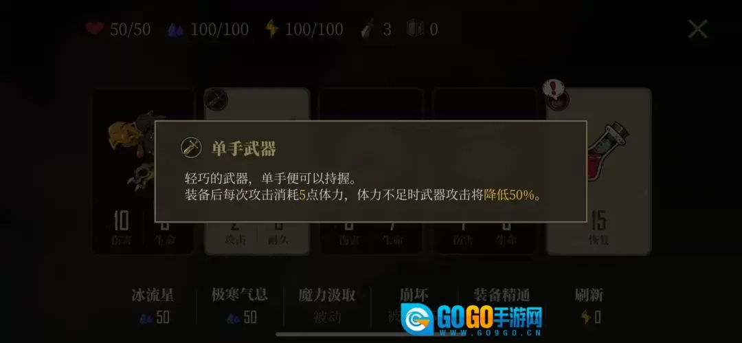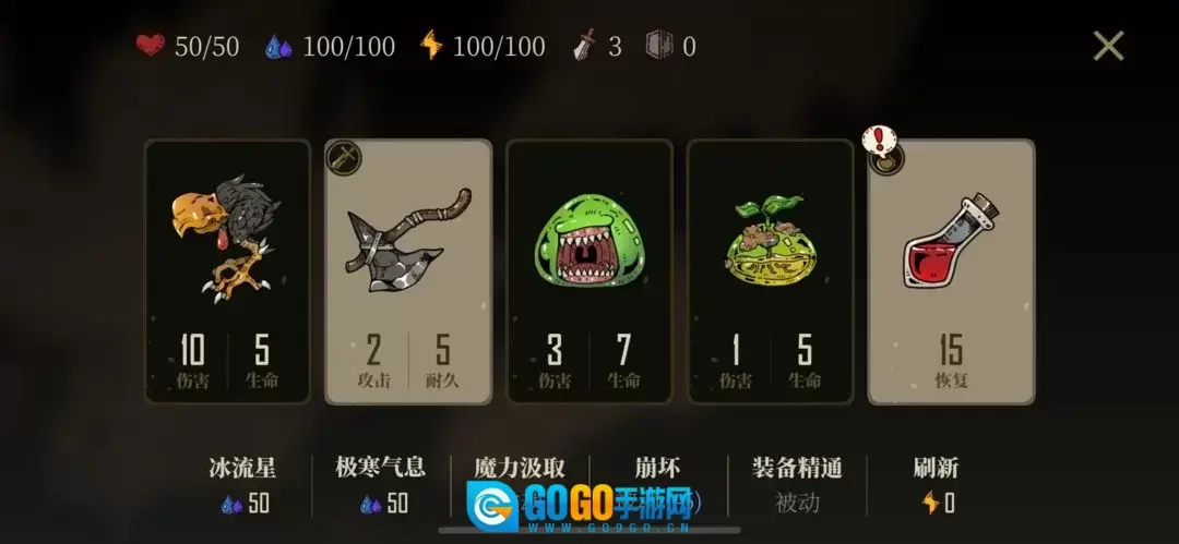 以最终关为例,其他关卡若没有BOSS可跳过第一步。开局阶段,测试版在未使用道具或攻击怪物前能免费刷新回合,可随意刷新寻找心仪的道具,尤其是想要的刀盾组合。我个人习惯优先针对BOSS,所以会先找蓝色大剑搭配一个盾牌,直接和BOSS硬拼,之后用剩余耐久的刀盾去处理几只怪物(优先精英怪,普通怪次之,小怪绝对不碰)。通常刷新五回合后若仍没找到合适的,就重新开局,毕竟还在开局阶段。