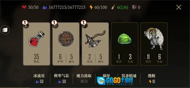 武器方面,单双手武器就是常规打怪用的,没什么特别需要说明的;远程武器搭配冰冻效果使用,效果会非常显著;魔法武器建议优先攻击满血的敌人,当充能较低时可以用来补刀。最后一关里,武器攻击会有大约60点左右的溢出,所以在必要的时候,使用高攻击力的武器去补掉一个精英怪也是很划算的。