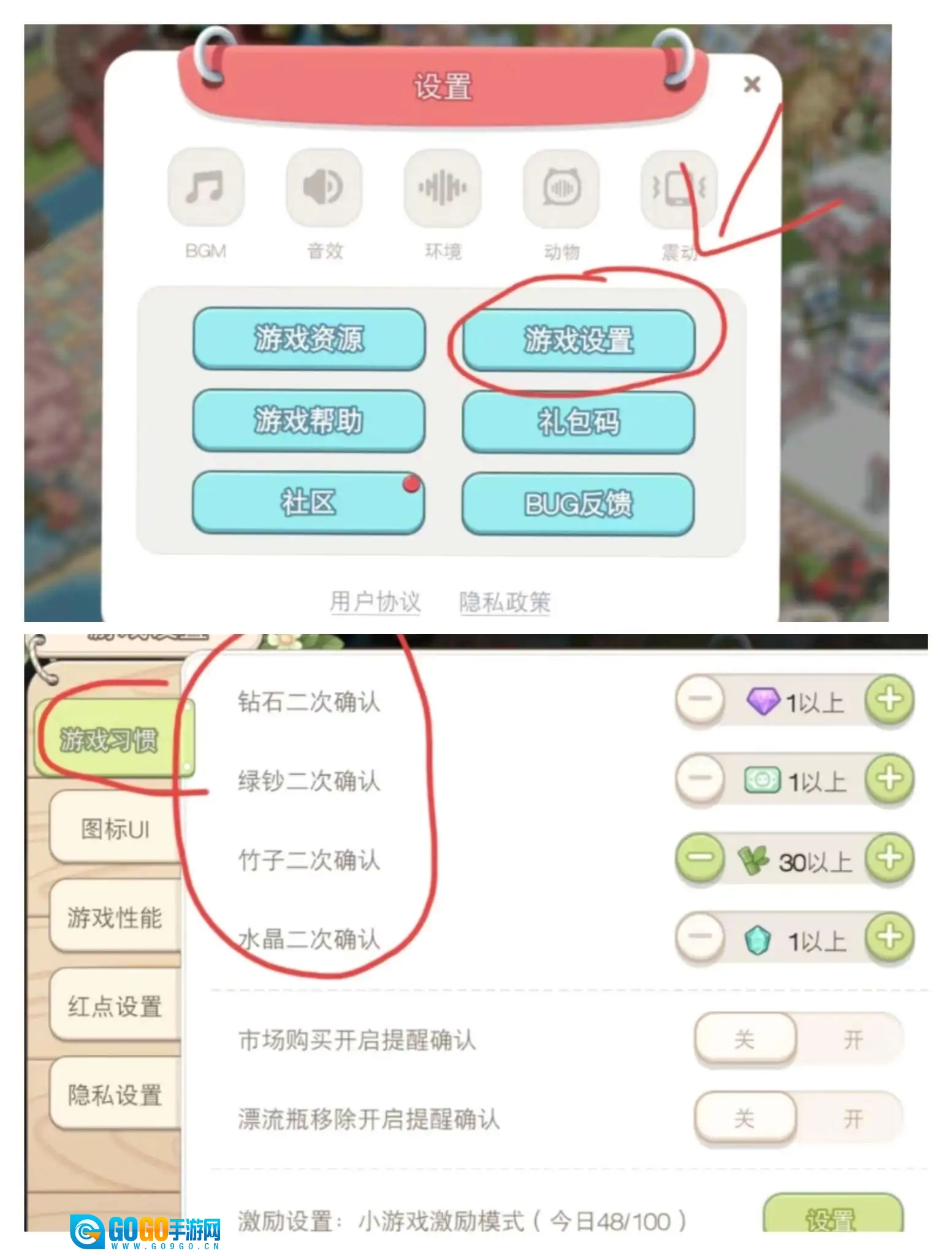 ④设置竹子/钻石/绿钞二次确定【必做!】
