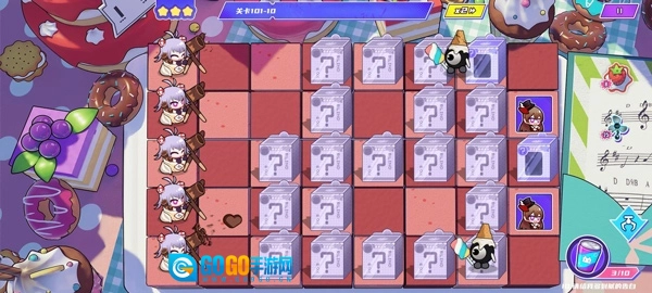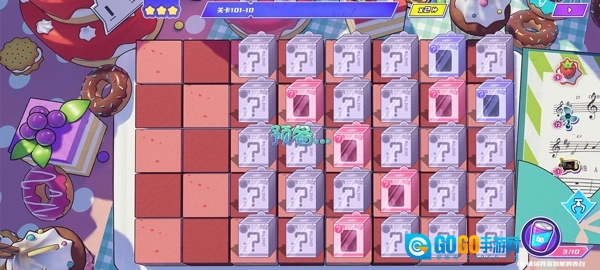我个人的建议是,开局时可以先把五个粉盒子都放在第一排,全部放好之后,再从最后一排开始逐个点击盒子。