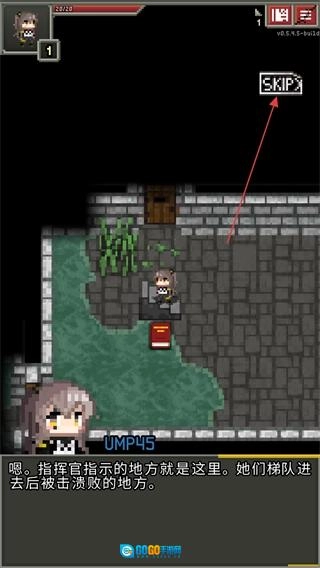 进入游戏后会出现剧情对话,点击界面右上角的SKIP按钮,就能跳过这段剧情对话,直接进入地牢的探索场景。