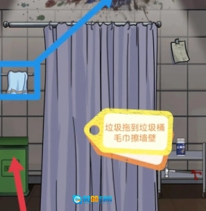 垃圾放进垃圾桶,毛巾用来擦墙壁。