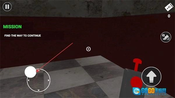 这是游戏关卡的任务界面,借助界面上的移动控制按钮来操控角色,探索场景以推动该任务的进度。