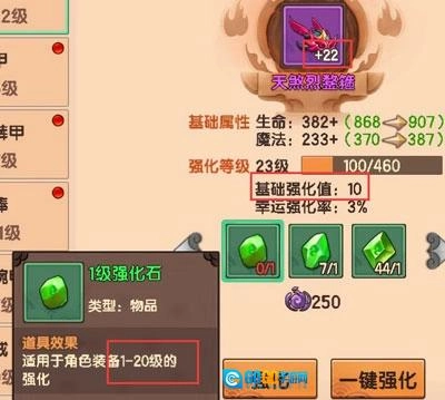 例如1级强化石适用于1-20级装备的强化,2级强化石适用于21-30级装备的强化;