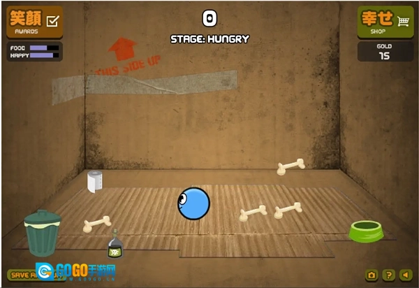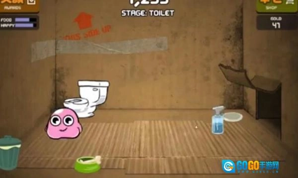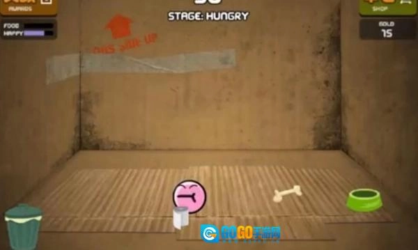 3、游戏里会出现一些金币和粑粑,及时清理掉粑粑能让它心情变好,还能收集金币去商店购买食物。