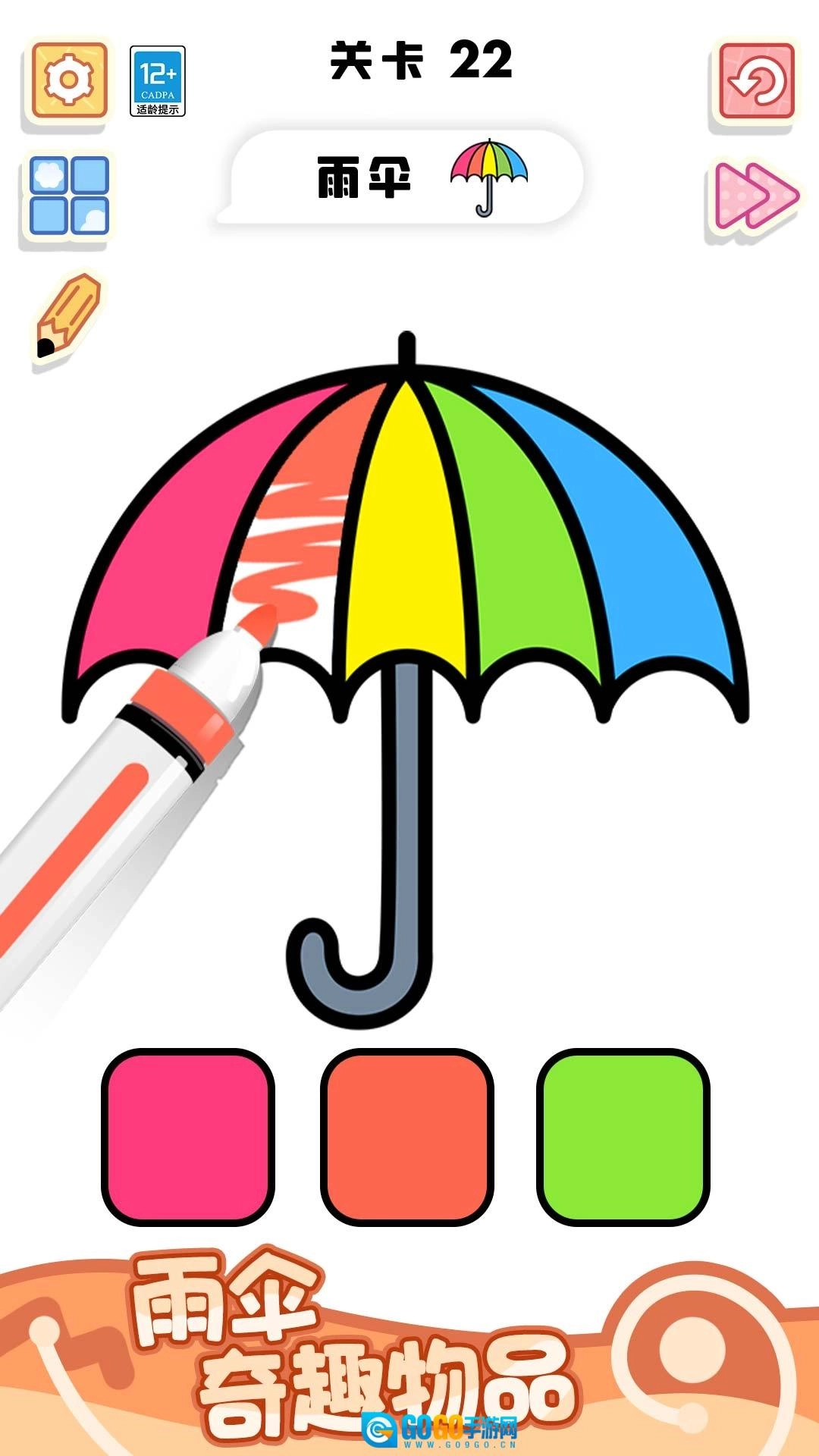 游戏不限制填色的先后顺序,玩家能够按照自己的习惯随意操作。当所有区域都被填充上正确的颜色,并且和示例图完全一致时,就代表这一关卡成功通过了。