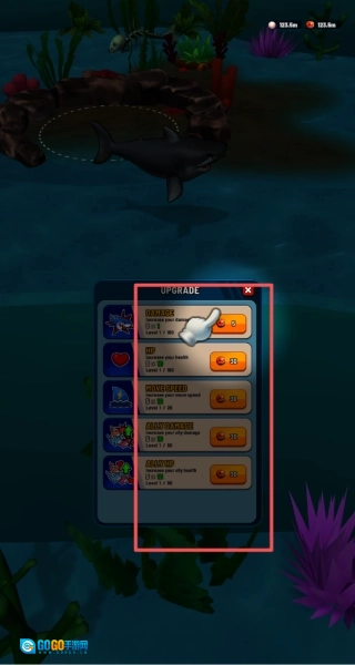 海洋并非独舞的舞台,你还得组建鲨鱼小队。游戏里能收集并升级各类支援型海洋生物,借助策略搭配不同物种,达成战斗协同。
