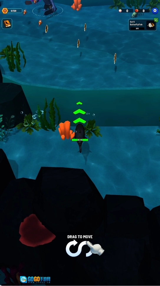 需要持续捕食各类鱼类、海龟乃至游泳的人类,以此维持饥饿状态,并获取用于进化的经验值和金币。