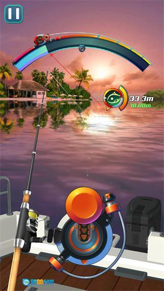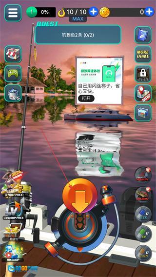 1、启动钓鱼胡克游戏,进入海岛场景后,向下拉动底部的摇杆即可开始钓鱼。