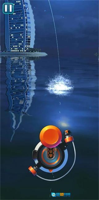 3、当鱼钩沉入水中后,留意屏幕上是否出现HOOK字样——这代表鱼儿已经上钩,此时点击下方的按钮即可完成收杆操作。
