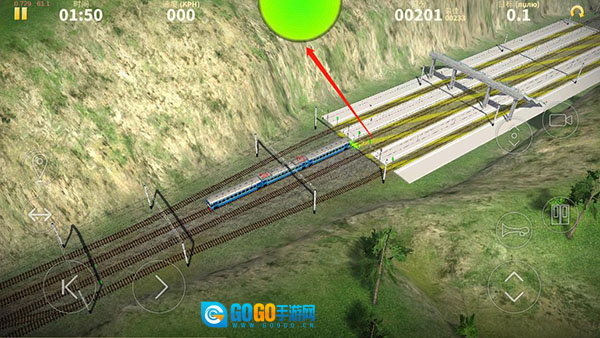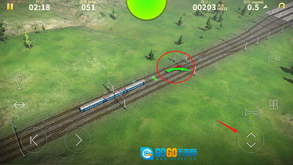 6、依据指示能够提前知晓前方道路状况,点击图中所示按钮可切换火车的行进方向,确保全程绿灯通行无阻;