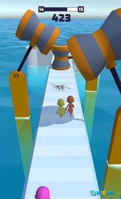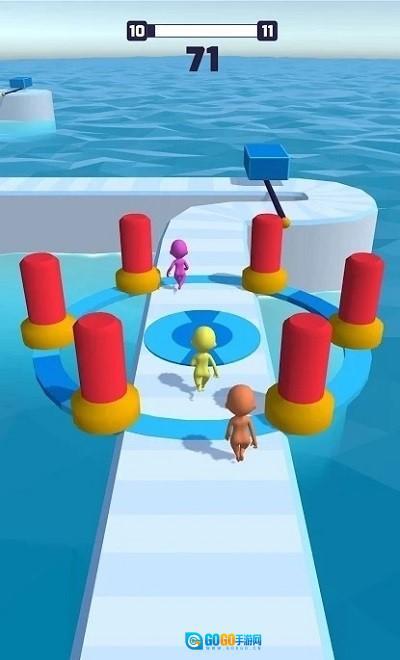 1、通过滑动屏幕操控角色在湿滑的赛道上移动,既要保持平衡,又要快速冲向终点。