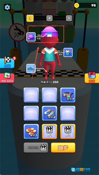 3、在赛道上收集金币与各类道具,借此提升自身能力,同时为接下来的关卡预先做好准备。
