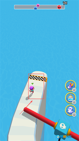 4、开始水上闯关挑战躲避障碍向终点冲刺。