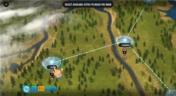3、系统会智能标识出当前城市可拓展的路线方向,你可以自由选择想要开通的连接线路。
