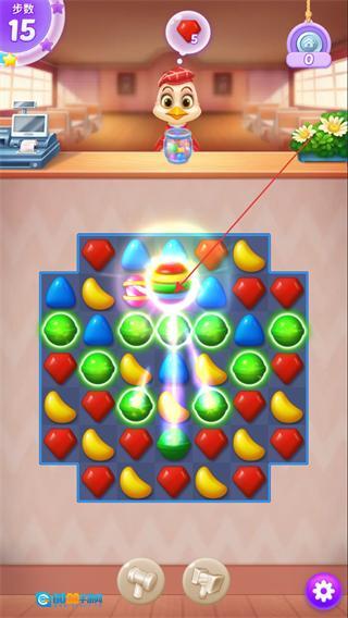 选用高饱和度的清新卡通美术风格,色彩组合明亮而柔和,场景与元素的设计满溢童趣与梦幻氛围,既贴合糖果主题,又可减轻视觉疲劳,营造出治愈系的游戏感受。