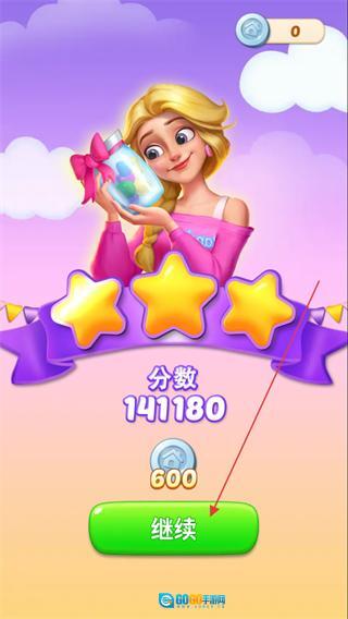 当达成收集20颗红宝石的目标后,即可获得三星通关的评价,此时点击“继续”按钮就能进入下一关。