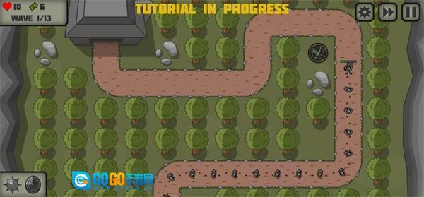 在本站安装战术战争塔防游戏并启动,点击战场上预先留出的空位来放置你的第一座防御炮塔。