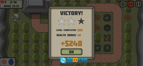 每一关都会有好几波敌军接连发起进攻,只要在基地血量耗尽之前抵挡住这些攻势,就能成功通过这一关。