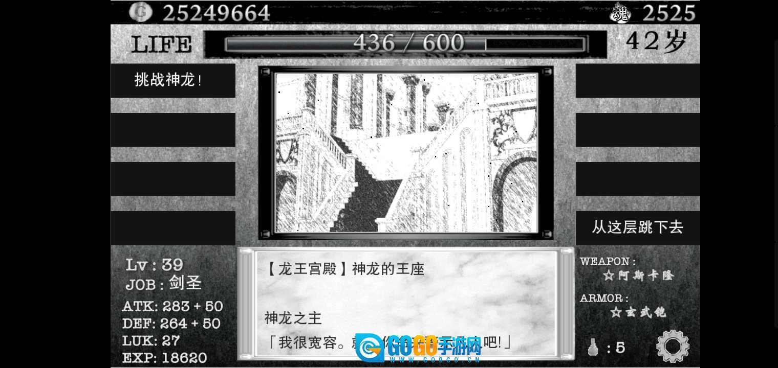 存够差不多200金币后,就去买短剑和丝绸衣,把第一关的小怪打败。大概6到7级的时候,基本就能轻松通过这一关了。
