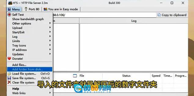 5、点击菜单,导入数字压缩包解压后的文件夹。