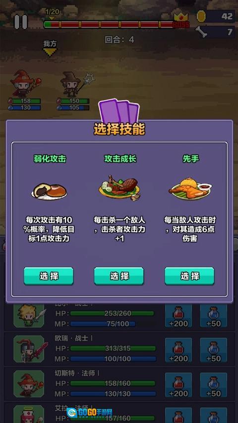 每关所选的技能效果能够叠加,最后挑战boss并取得胜利。