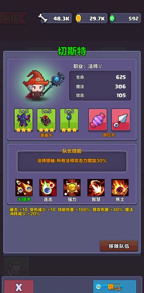 这套用来打史莱姆的阵容是蓝西瓜分享的,他靠这套打到了245级,我用这套打到了205级。装备方面大部分选的是暴击属性,部位卡搭配是六张斩杀卡、五张暗器卡,还有1张淘汰卡。