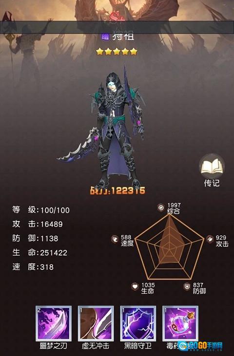 S+核心卡:狩祖(低血量时触发斩杀效果的连击型卡牌,是S+品质中单体输出能力极强的卡片)