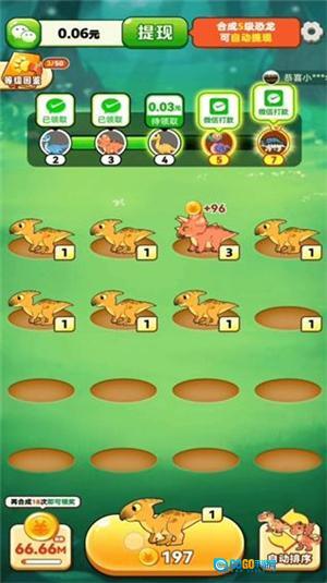 这里有不同种类的小恐龙,你可以点击它们进行合成,这种轻松休闲的合成玩法能让你获得不少红包奖励。