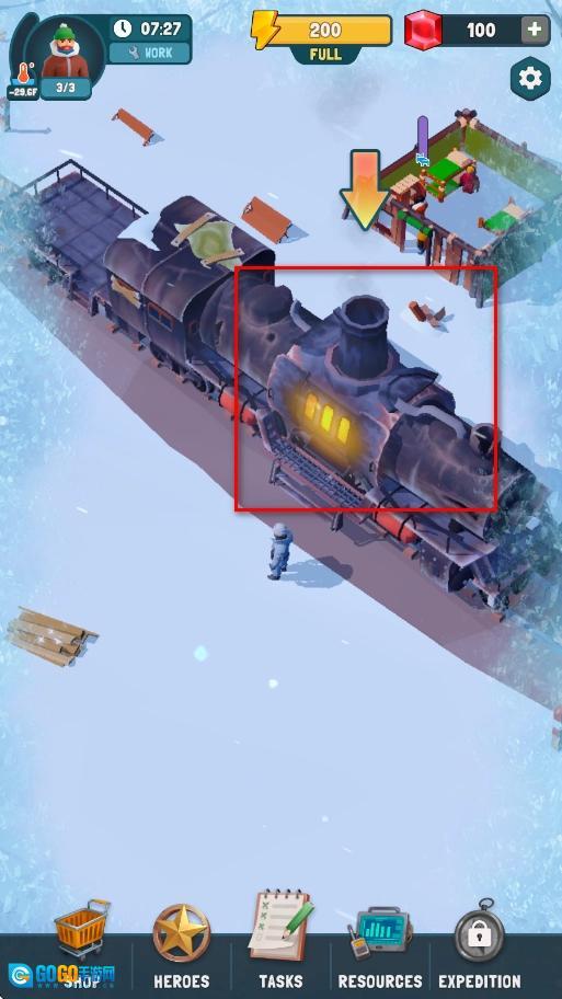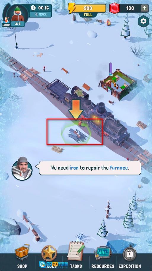 接到任务后,了解到修复熔炉需要用到铁矿石,于是前往指定的火车区域,点击那里的互动标识,派遣角色去收集铁矿石,直到满足熔炉的修复条件。