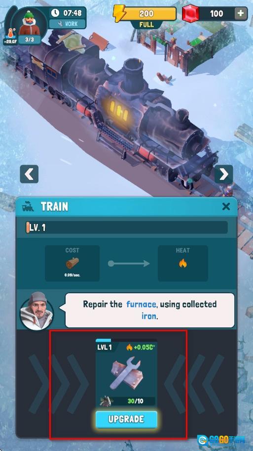 修复熔炉后,打开火车升级界面,根据现有资源和实际需求,点击对应的升级按钮,以此提升火车的各项属性,进而增强其在冰雪环境中的生存能力。