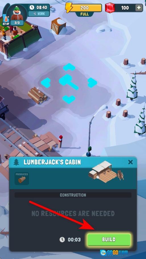 除了修理火车,还可以拓展营地,找到建筑建造的标识后点击建造按钮,花费时间建造伐木小屋之类的设施,以此辅助获取资源。