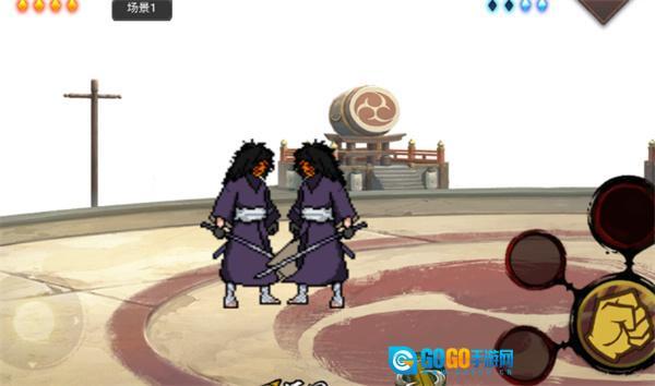 4、左侧区域可操控角色移动,右侧区域用于释放忍术;对战过程中,任意一方血量降至零即判定为失败。
