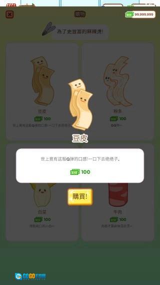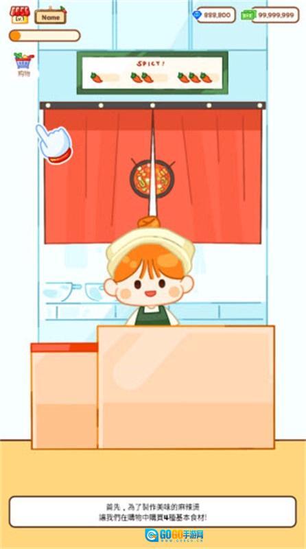 在这个页面把游戏安装好并打开。刚开始会有新手引导教程,制作麻辣烫得用到4种基础食材,我们先去把这些食材买下来。