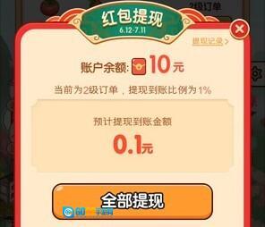 3、红包提现比例以百分比计算,且完成的订单数量越多,提现比例就越高,相应地到账的红包金额也会更多。