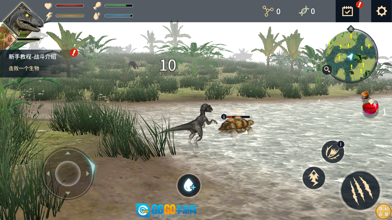 二、战斗攻略 攻击方式 单击:普通撕咬(消耗耐力) 长按:蓄力重击(破防效果) 滑动+点击:甩尾攻击(范围伤害) 属性克制 甲龙克肉食龙(高防反伤) 速龙克草食龙(流血特效) 飞行单位克地面单位(需对空技能) 地形利用 引诱敌人到沼泽减速 在狭窄岩洞卡位大型敌人 高空坠落造成额外伤害