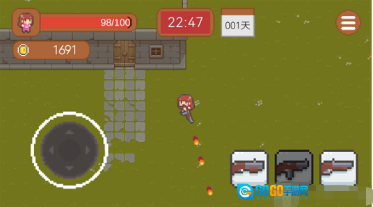 玩家刚进入游戏时,就要与怪物进行紧张刺激的射击对决。界面左上角显示玩家的血量,右下角则是武器选择区域。值得注意的是,玩家无需手动操作射击,武器会自动开火。不过,金币数量会随着子弹的发射而减少,而击杀怪物后,有一定概率会掉落金币作为补充。另外,这款游戏目前没有设置背景音和射击音效。
